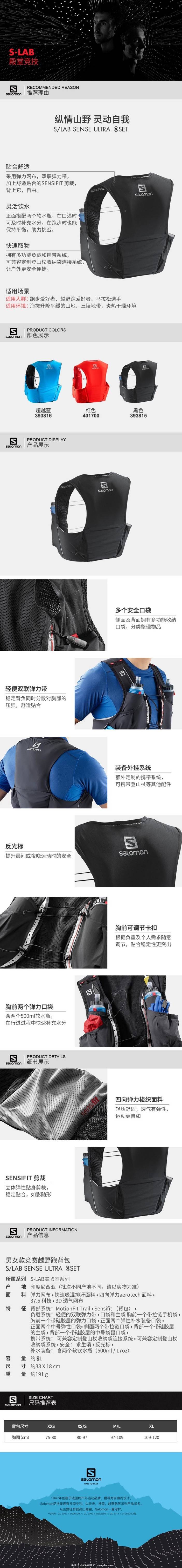Salomon萨洛蒙男女款竞赛越野跑背包S-LAB SENSE ULTRA 8L